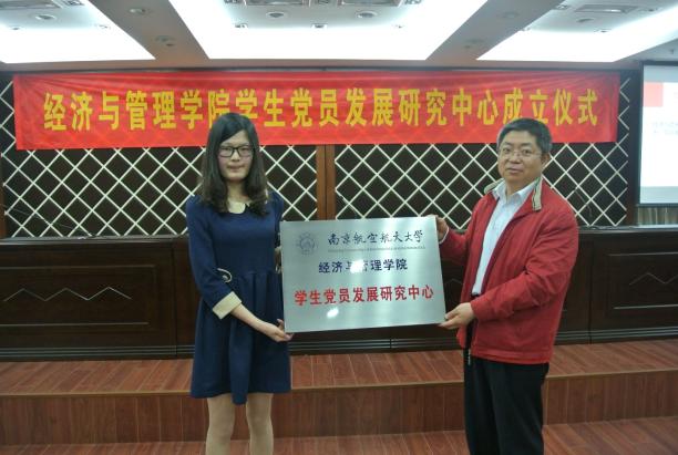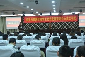 学生党总支委员会请示的批复》。学生党员发展研究中心主任王梅同学从中心宗旨、主要任务等方面详细介绍了中心工作与设想。李遥书记为中心授牌,并从“党员”、“发展”、“研究”这三个关键词中对全体学生党员提出了要求和希望:一是希望每一位党员发挥好“榜样、示范、带动、辐射”的作用,切实履行党员义务;二是希望学生党员从发展的角度考虑将个人成长与组织发展有机结合;第三是希望党员同学们在工作中多思考,并对实践中出现的各种问题,有针对性地开展应用性调查研究和研讨,使我们的党建工作更加科学化和系统化。