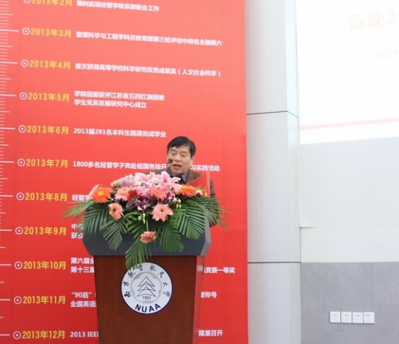 副院长张卓老师宣读2012-2013学年学校各类表彰决定,与会领导、嘉宾向获得各类荣誉奖项的学生代表颁奖。学院周德群院长结合热点时政、经济发展,教育鼓励经管学子:“要努力使自己素质过硬。世界太精彩,充满诱惑,一旦定力不够,可能光阴就在游戏旁度过,就在睡梦中流失,就在刷微信中消逝。”“努力使自己变得脚踏实地。经济学是一门显学,管理学是一门致用的学问,两者都说明了学院培养的学生一定要接地气、一定要脚踏实地。希望大家成为完整学习的人,不仅有认知,同时有行为。”并以访问以色列时最深印象是民族的创新精神切入,认为“创新真的很重要,同学们承担着中国经济产业转型的使命”,希望同学们“为理想奋斗,矢志不渝,革故鼎新,即刻付之于行动,向榜样学习,实现自我超越,为成长为高素质公民和未来的开拓者而不断努力奋斗。”(审核人:许静)