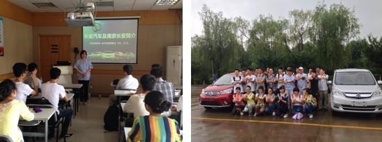 师生们到了厂区之后,公司团委书记顾蕾蕾先就南京长安做了一个简单全面的企业介绍,特别展示了近年长安汽车自主研发的成就。之后,师生们有幸听取了毕业于南航的学长——人力资源部部长吕京的职场经验分享,会上,他讲述了中国汽车行业创新力不足的发展现状和汽车产业自主创新的重要性,并鼓励同学们要努力担负起促进中国工业发展的重担,缩小中国与国外发达国家的工业发展差距。会后,师生们戴上安全帽,在吕京部长和工作人员的带领下,来到了南京长安汽车生产线的焊接车间和总装车间,近距离的对汽车生产的流程、工艺和生产环境有了一定的感性认识。两个车间参观结束后,部分男同学对南京长安生产的一款空间灵活、助力轻松、市场获性价比好评的欧力威汽车进行了试乘。