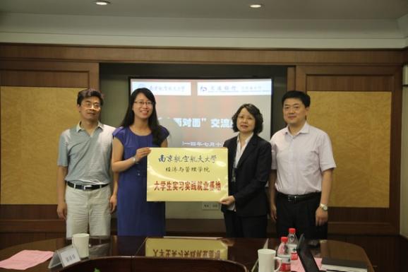 上午,交通银行江苏省分行人力资源部总经理韩波,解放路支行行长张慧、副行长甘勇、御道街支行行长张晨迪及省行人力资源部主管、六位南航优秀校友与经管一行深入座谈。韩波经理首先回顾了交行与南航的渊源,感谢南航向交行输送了大量优秀的学生,然后就交行近年来校园招聘方式、人才考量标准做了详细介绍,并从毕业生职前适应性教育、心理抗压培训等方面对南航学生培养提出了中肯建议。各支行行长、南航校友们从业务层面对南航学生技能型培训、岗位胜任力发展等方面给与了建议。许静副书记从南航人才培养模式、经管专业排名发展、师资及科研方向作了交流,段进东老师详细介绍了经管金融专业发展、课程设置及与交行御道街支行开展的研究生交流工作站现状。交流中双方就学生实习生制度、研究生工作站建设、企业员工培训、行业专项研究等方面达成共识,形成共建协议。最后,许静为院企合作基地授牌,韩波、张慧等六位交行领导受聘为“男人天堂 企业导师”。