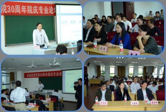 10月18日14点,男人天堂 30周年院庆活动之一——MBA职业发展论坛在经管大楼辅楼A0207开幕。出席本次论坛的有华瑞国际实业集团董事长康宜华,学院副院长王英、张卓,MBA教育中心主任王建玲,学院博士生导师苗建军,南航学生处就业指导服务中心副主任吴庆春,MBA合作办学单位的负责人高宣、余爽、严永峰,MBA毕业的各地优秀学员, MBA在读学员。会议由MBA教育中心副主任修立军主持,副院长王英和党委书记李遥分别致开幕辞和闭幕辞。此次论坛的主题是职业发展,康宜华董事长作为主讲人,做题为:有梦、简单、共赢、另类的讲座。