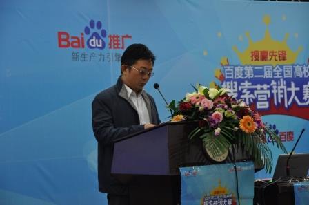主持人简短开场及嘉宾介绍后,周德群院长致辞,周院长通过互联网对当今时代的影响,强调了搜索引擎的重要性,鼓励经管学子积极参加大赛,培养自己综合素质,为未来互联网行业储备人才积蓄力量。接着,段建总裁发表了热情洋溢的演讲,分别用“从‘商’的角度看百度”、“搜索引擎是一扇打开认识百度的大门”和“90后应该到最激情、最市场、最创新的行业去奋斗”三句关键语阐述,提出在营销方面,企业应从千千万万潜在用户中寻找销售对象,并对百度产品做了简单介绍。之后,百度首席讲师刘伟风趣幽默的向在场学生讲述了大数据时代的营销变革。他以自己的人生经历作为开头,讲述从安稳的政府工作单位跳槽至互联网行业的初衷,并用百度大数据的挖掘与对比、数据的分析与预测向大家展示了互联网时代大数据的价值与实用性,其列举了百度筷子、百度广告精准营销策略,给大家带来了极大的震撼,讲话的最后,他提出百度营销大学是为了向社会推广营销理念和培养互联网人才,指出它包含“师资培训”、“学生实训”、“竞赛”和“实习/就业”四个部分,鼓励大学生积极加入百度营销大学。宣讲会尾声,刘全力先生简洁明了地为大家介绍了营销大赛的背景、目标、组织结构和参赛时间等,并与现场观众互动答疑。