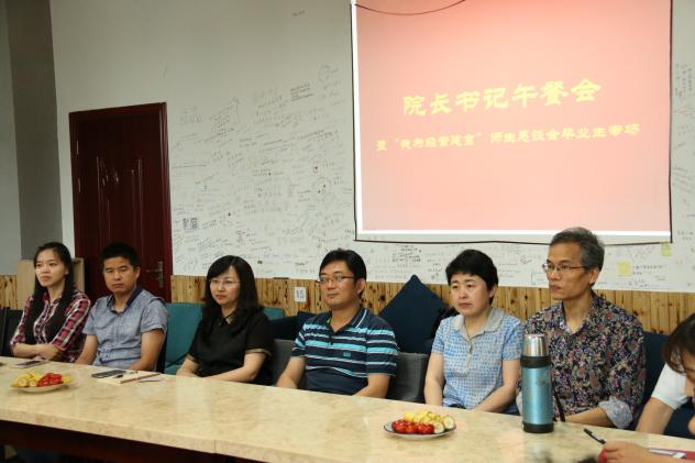午餐会的最后,周德群院长表达了在即将毕业之际对学院说出肺腑之言的同学们的感激,无论是表扬还是批评,这对学院建设来说都是一笔宝贵的财富。他还告诉同学们无论今后的路途怎样,良好的学习习惯、健全的人格才是获得成功的关键,是前行、立足长远发展的不断推动力。书记焦宏图也指出在学习阶段,希望大家能牢牢把握住自己的主动权,继续优秀下去。在今后的学习工作中能不忘初心,欢迎大家常回学院看看,学院永远是大家的港湾!