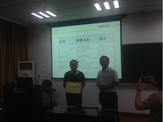 在暑期实习的开题讲座上,曹经理与王主管首先给出了经过公司讨论确定的五个选题(注塑车间最优排产模型研究,压铸车间快速换模研究,机加汽车间全流程价值流研究,制造运作部分的流程优化研究,机加汽车车间的间接人员优化研究),并就每一研究题目的含义和具体工作给出了界定。在同学的积极提问中,两位企业专家详细解答了同学们关于实习的考核要求、工作时间、工作方式及食宿等方面的疑惑,并鼓励大家积极报名、勇敢尝试解决企业真正需要解决的难题。曹经理应邀成为我校工业工程专业企业导师,管理科学与工程系主任张骥骧老师在讲座中为曹经理授予聘书。