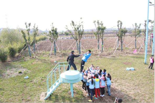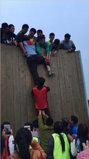 强壮的男生做底座,先翻越的男生在墙上拉人,协助队员们翻越四米高墙。全程中,女生的呐喊助威声响彻在空旷的天际,一道道奋力拼搏的身影被摄像机完美定格,成为所有人永生难忘的回忆。
