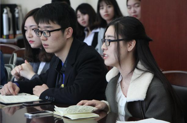 在604会议室召开了“感念师恩,情系经管,共话未来”2017届毕业研究生座谈会,院党委书记焦宏图,副院长张卓、王英、周鹏,管工系系主任马静、徐海燕老师,工商系副主任谢嗣胜,经济系系主任张伟,研究生教务员周瑾如老师,研究生辅导员袁颖与2017届研究生代表亲切交流,座谈会由学院党委副书记许静主持。