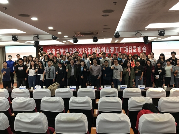 在学院A0305报告厅成功举办创新创业梦工场2018年创业项目发布会,校教务处副处长朱建军,学院副院长邓晶,学院党委副书记涂志宏,学院教授谢乃明、关叶青,校创业孵化中心运营专员奚畅嵘,学院团委书记庞依达,辅导员朱一豪和学院百余位学生共同参加了本次活动。