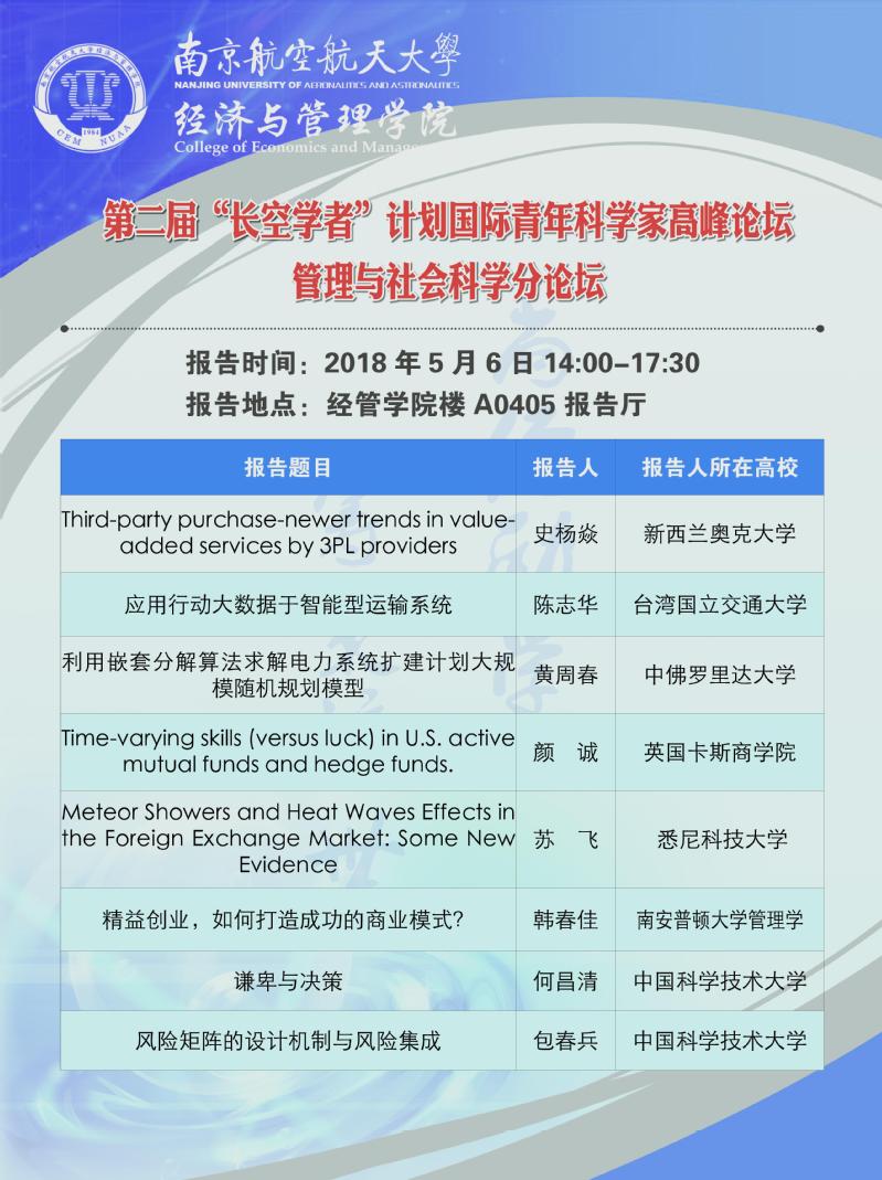 报告人简介:Yangyan SHI, 澳大利亚麦考瑞大学管理学院高级讲师/副教授,博士生导师。研究领域为运营管理、物流管理、供应链管理等。目前已在SSCI、SCI,ABDC,ABS期刊发表多篇学术论文,例如:International Journal of Production Economics, International Journal of Operations and Production Management, Supply Chain Management: An International Journal, Applied Economics, Production, Planning and Control, Supply Chain Management Review, International Journal of Logistics Systems and Management, APICS Magazine等。国际期刊IJAL副主编,英国皇家物流与运输协会注册会员,美国供应链管理专业委员会会员,国家教育部和科技部举办的第十届“春晖杯”优胜奖获得者。