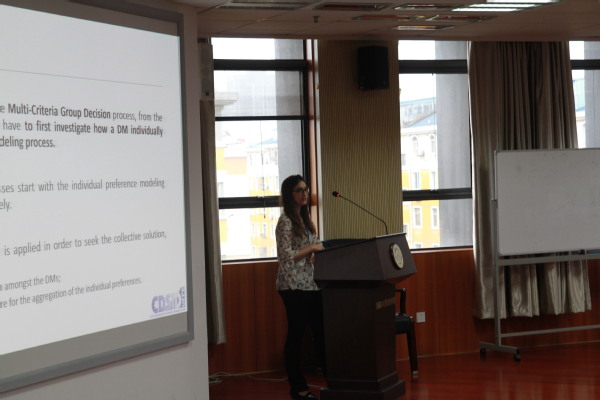 来自Hefei University of Technology的Juxiang Wang做了题为《A Novel MAGDM Method with Multi-granular Probabilistic Linguistic Information》的汇报,提出了一种具有多粒度概率语言信息的新型群体决策方法。