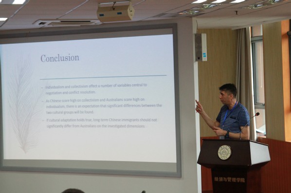 Tair Sahini 做了关于《Cultural Adaptation in Conflict Resolution-The Csae of Recent and Long-term Immigrants to Australia》,就澳大利亚新进和长期移民进行调研,阐述了冲突消解过程中文化适应性现象;