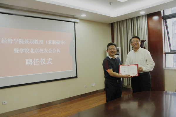 座谈会中,周德群院长还为杜豪先生颁发了男人天堂 兼职教授暨男人天堂 北京校友会会长聘书。杜豪先生表示将在校友工作中不断加强与学院的交流,不断开拓校友工作的新局面。