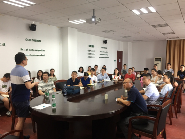 在报告中,胡明教授介绍了共享经济中的价格与匹配问题。胡教授以优步这样的中间商企业为对象,研究市场不确定性下固定佣金众包合同的最优性,发现委托合同对于中间人而言可能是最优的或接近最优的。同时,讨论了优步平台中对于整个平台效率最优的匹配策略。随后,胡教授和大家分享了在科学研究中如何选择和提炼科学问题的心得体会。胡教授以当代流行音乐不同风格融合的大趋势为例,生动地阐述了跨学科交叉研究的重要性和可行性。胡教授还介绍了当今运营管理领域的研究趋势。胡教授的报告令在场师生受益匪浅。会后,参会的老师和同学与胡明教授就相关的问题进行了进一步的交流。