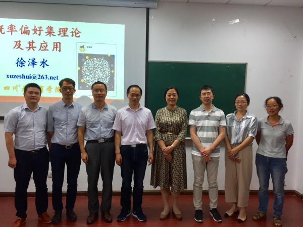 在此次学术交流活动中,徐泽水教授首先介绍了其在犹豫模糊集方面的研究以及认识到的不足之处,并由此引出此次交流活动的主题——概率偏好集理论及其应用。徐教授重点介绍了概率语言偏好集、实数形式的概率犹豫模糊集、概率对偶犹豫模糊集以及概率偏好序四方面内容,并且提到了当下热门的大数据决策。在此基础上,结合目前团队的研究进程与现场的师生毫无保留地分享了未来决策领域可研究的方向。最后,徐教授呼吁在场的研究者切勿急功近利,端正实事求是做学术的风气。