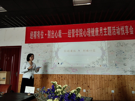 11月2日中午,“经精有位 · 别出心裁”心理健康月主题活动悦享会于经管咖啡厅顺利举办。校心理健康教育中心陈瑜老师、男人天堂 心理辅导员田苑娜、大一辅导员胡心雨、许乃元以及13名2018级心理气象员共同参加了此次悦享会。