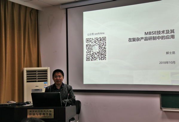 西工大郭云涛教授主持了第四场学术报告,南理工刘健做“运作管理(排队论)研究现状总结与分析”,分排队论基本情况介绍、影响顾客排队的因素分析、现有研究存在问题及分析三部分展开;南京林业大学李亚平做了题为“基于观测自相关隐马尔可夫模型的统计过程监控”的精彩报告,针对该问题她提出几点建议:降低抽样频率,增大抽样间隔;通过重新估计过程的实际方差修正控制界限的上下界;运用ARIMA模型、神经网络法、隐马尔可夫模型解决该问题;最后北京智航天宇科技有限公司总工程师解士昆解总介绍了“MBSE技术及其在复杂产品研制中的应用”,解总工程师详细介绍了我国武器装备研制中系统工程的主要应用——瀑布模型,指出复杂产品的研发开始从传统的系统工程(TSE)向基于模型的系统工程(MBSE)发展,提出了当前我国装备研制的短板在总体设计与协调,并从架构师的职责出发,对产品进化、功能及可靠性一体化建模、架构权衡和优化等方向进行了阐述。
