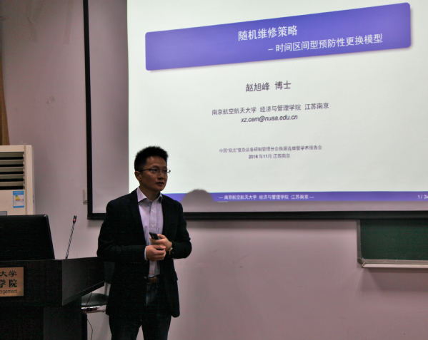 下午,李凯教授主持了第三场学术报告,首先,南航赵旭峰教授介绍了“随机维修理论”,从指数型失效分布、随机化维修策略、随机可靠性系统三个内涵展开;航天科技集团唐伟处长介绍了“系统思维与系统工程”,重点介绍了中国的系统工程及系统科学相关理论,包括控制论、信息论、一般系统论与钱学森系统科学理论;河北工业大学吴利丰副教授做了题为“灰色模型在复杂装备费用预测上的应用”的精彩报告,首先介绍了GM(0,N)模型与装备费用预测,然后简要介绍了几个典型应用:分数阶离散灰色模型及其在备件需求预测中的应用;光电装备维修器材多变量分数阶灰色预测模型研究;基于数据融合和改进MUGM(1,m,w)的导弹装备故障预测。