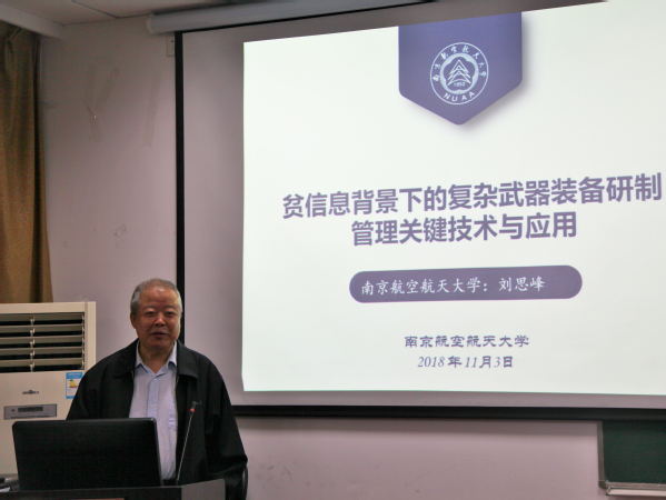 本次学术报告会分四场进行。学术报告第一场由西工大杨乃定教授主持。刘思峰教授做了题为“贫信息背景下复杂武器装备研制管理关键技术与应用”的精彩报告,针对中国情景下存在的研制问题,如小子样、数据离乱;费用高、成本难以控制,研制方案筛选难度大、质量成本预测困难等,提出一些基础理论突破、创新与应用,给大家带来很多启发与思考;航天八院的陆志沣总师带来了题为“武器装备体系设计与评估方法探索研究”的报告,详细介绍了体系能力贡献度评估方法,旨在构建武器装备体系综合设计、仿真实验、综合评估一体化支撑环境,提升武器装备体系设计的效率、可靠性和有效性;合工大李凯教授介绍了“面向再制造的多产品生命周期集成系统优化理论和方法”,指出再制造产品系统优化的经济、社会及环境效益,讲述了再制造关键零部件循环生命周期模型及其演化规律,重点介绍再制造的多产品生命周期集成系统模型与优化方法。