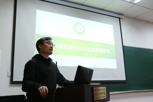 随后,班主任沈洋老师发言,他希望并鼓励文强班同学积极主动地与导师保持联系,在学术科研等领域努力进取。邓晶在发言中对到场的各位导师表示衷心的感谢,并强调导师制对于文强学生增强综合素质,促进全面发展具有重要意义,鼓励导师与学生建立起长久、稳定、密切的联系,真正成为学生成长成才过程中的领路人。