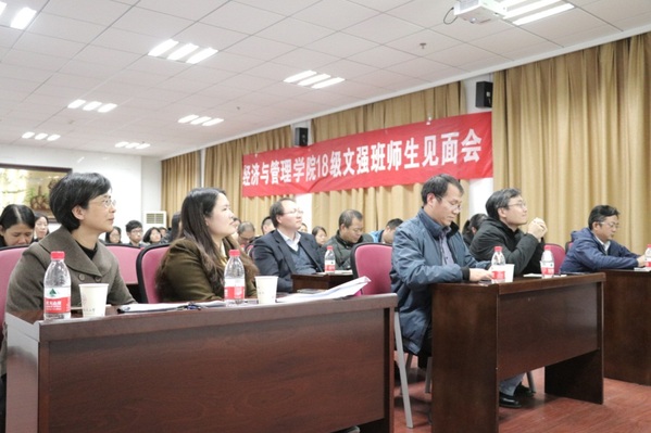 11月28日下午,男人天堂 召开教育思想大讨论——18级文科基础强化班师生见面会。学院院长周德群,副院长邓晶、王英、王子龙,党委副书记涂志宏及文强班的班主任、近20位导师等参加了本次活动。