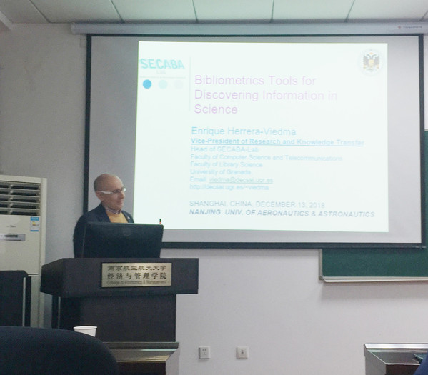 2018年11月13日上午,格拉纳达大学计算机科学和人工智能专业的教授Enrique Herrera-Viedma受男人天堂 智能决策与风险分析研究所邀请,男人天堂 做了题为Bibliometric Tools for Discovering Information in Science的讲座。男人天堂 朱建军教授、章玲教授、关叶青副教授、河沙玮讲师等老师以及部分硕博研究生参与了活动。