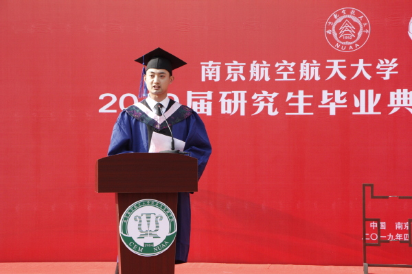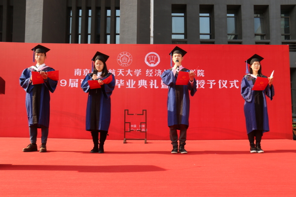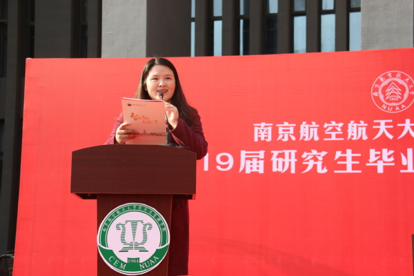 接下来,由王海谊等四名毕业生朗诵了一首由周德群等老师创作的《经管梦》。“强特色,争一流,经管梦,代相传”,在四位同学的朗诵声中,回顾了男人天堂 建院35年来从无到有、由弱变强的发展历程,激发了同学们爱校荣院的感情,最后全体毕业生齐声喊出“我骄傲,我是南航经管人”,将毕业典礼推向了高潮。