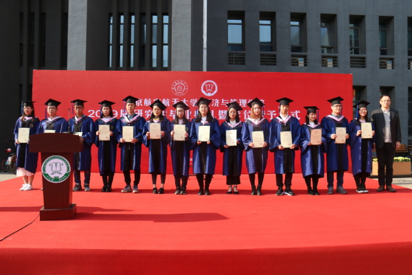 真挚感人的毕业典礼后,进行了庄严的学位授予仪式,学院学位委员会的导师们在权杖入场的欢呼声中走上舞台。首先,王英宣读了《关于颁发南航男人天堂 2019届研究生毕业生毕业证书、学位证书的决定》,随后在学术权杖见证下,在全场老师、家长、同学的注视下,毕业生们骄傲地走过红地毯,从师长手中接过了学位证书,完成了人生中这一重要时刻,并留下一张张珍贵的合影。