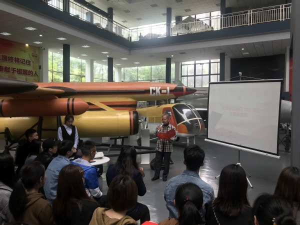 齐唱国歌后,师生共同参观了校航空航天博物馆,通过两位讲解员的讲解,了解了我国航空航天事业发展历程,同学们对航空报国精神有了更深的认识。随后,姜顺龙为同学们讲授“纪念五四运动 100 周年”主题微团课,他结合个人成长经历、大飞机研制经历等过程,和同学们分享了五四运动的历史意义以及在航空航天事业中五四精神的传承与体现等内容,饱满的精神状态、丰富的人生阅历具有很强的感染力。