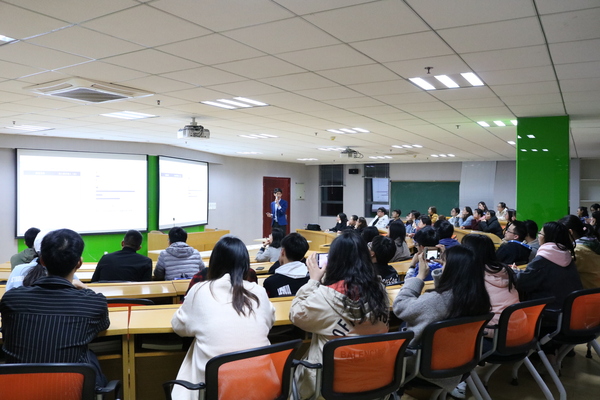 讲座开始前,随机抽选了20名在场学生分为两组进行了无领导小组讨论的模拟面试,模拟结束后,陈俊根据同学们在面试过程中暴露出的问题进行了分析讲解,并指导学生根据自己的性格特征选择合适的小组角色。随后,陈俊老师正式开始了今天的讲座,他首先给大家讲解了自我介绍的要点以及沟通表达的注意事项,重点强调了要在10-15秒的时间内突出自己的闪光点。最后,陈俊就面试常见问题给大家提供了借鉴模板,并建议学生从“职位的要求、我的优势、我与职位的契合程度”三个层面把握回答的要点。