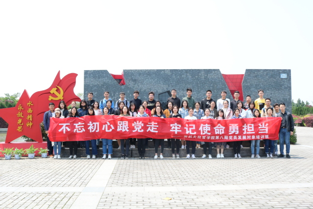 4月27日,男人天堂 开展“不忘初心跟党走,牢记使命勇担当”主题二级党校培训课程暨青马工程团日活动,70余名党员发展对象、青马工程培训班学员前往南航天目湖校区、新四军江南指挥部纪念馆参观学习,了解学校发展、追忆革命先烈,辅导员康冲、朱一豪一同参加了本次活动。