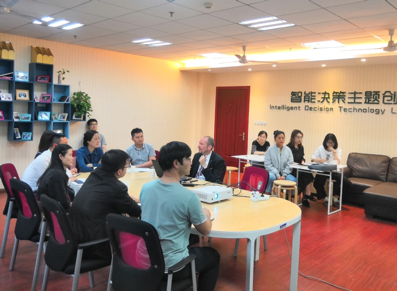 2019年05月05日下午,德国维尔道应用科技大学Thomas教授受男人天堂 智能决策与风险分析研究所邀请,在南航将军路校区男人天堂 403作了题为“Scenario management in strategy development”的讲座。男人天堂 朱建军教授、徐海燕教授等教师及部分硕、博研究生现场聆听了Thomas教授的报告,本次学术报告由徐海燕老师主持。