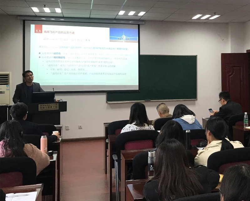 2019年3月26日下午,中国商飞上海飞机设计研究院飞机架构集成技术所高级工程师马麟龙先生应男人天堂 邀请,在经管院704室做了题为“现代商用飞机特性工程”的精彩讲座。