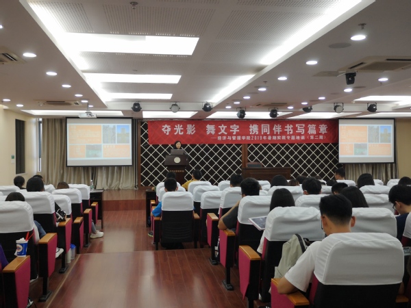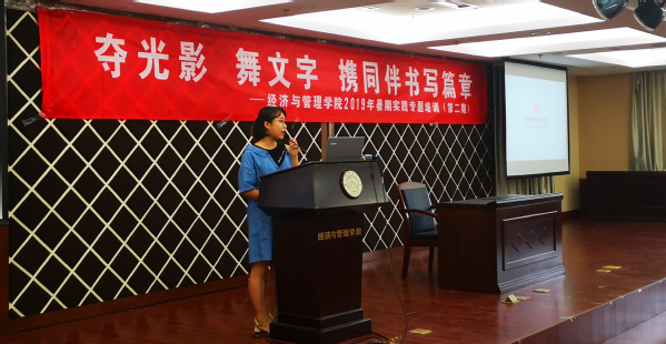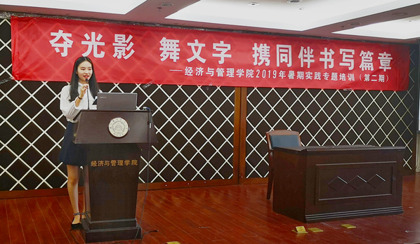 6月12号下午,"夺光影 舞文字 携同伴书写篇章"男人天堂 第二期暑期社会实践专题培训在经管楼A0305报告厅顺利举办。学院宣传员时云、2016级辅导员朱一豪、院新媒体中心邵丹惠分别就摄影摄像、团队运营和新闻撰写开展了专题培训,学院团委书记庞依达和近两百余名社会实践项目负责人参加此次培训。