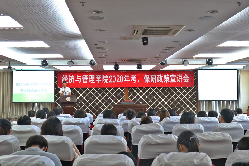 为了帮助2020届毕业生了解男人天堂 研究生招生政策,合理规划考研、保研,6月24日,男人天堂 在A0305报告厅举行2020届考保研政策宣讲会。男人天堂 副院长王英、管工系系主任马静、工商系系主任谢嗣胜、经济系系主任袁潮清、各学科建设负责人、系所骨干教师、辅导员及百余名2016级学生参加了本次活动。