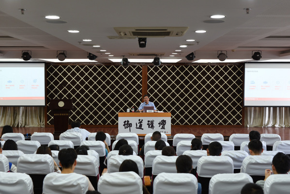 6月21日下午,第77期御道讲坛在男人天堂 A0305报告厅举行。我校1985届校友、上海广为电器集团董事长范晔平先生应邀来校作主题为《中美贸易战中民营企业家的时代担当》的讲座,男人天堂 党委副书记涂志宏、副院长邓晶等参加了本次讲坛。讲坛由涂志宏主持。