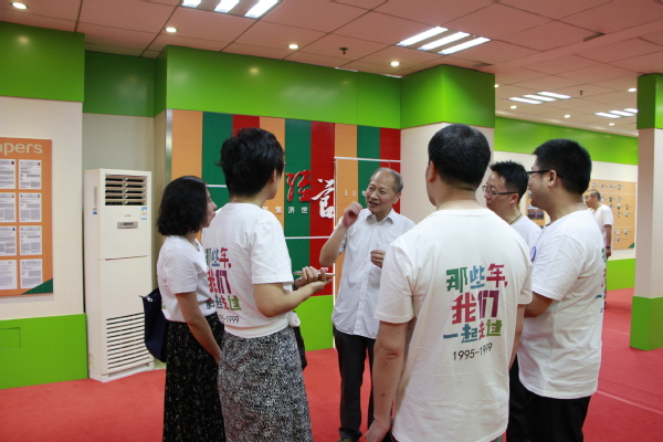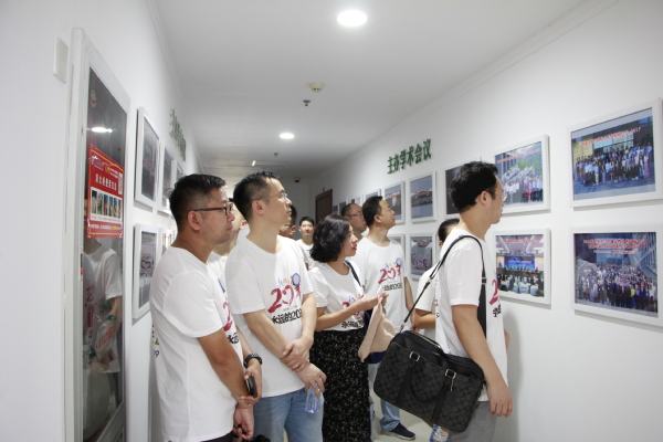 抵达后,黄炳辉、罗士礼、庞依达带校友参观了男人天堂 教学楼,校友们纷纷在照片墙上找寻自己的身影,往事历历在目。随后,校友们移步院史馆,围着老师听他们讲当年的故事,忆往昔,谈今朝,为男人天堂 二十年来的巨大变化引以为傲。