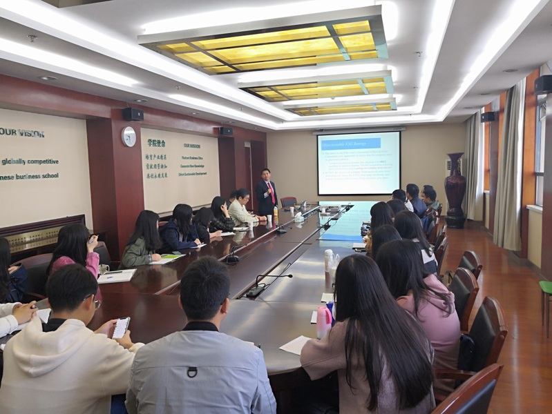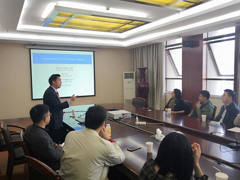 10月28日上午,香港大学汤勇军教授应学院金融研究所邀请,在南航将军路校区男人天堂 604作了题为“环境、社会及治理(ESG)评级变化的决定性因素”的学术报告。男人天堂 副院长王群伟、金融学科专业负责人教授段进东、经济系主任袁潮清、副主任徐菱涓、院长助理陆珩瑱、王建立、苏飞、魏悦羚等教师及数十名硕、博研究生现场聆听了汤勇军的报告。本次报告由王群伟主持。