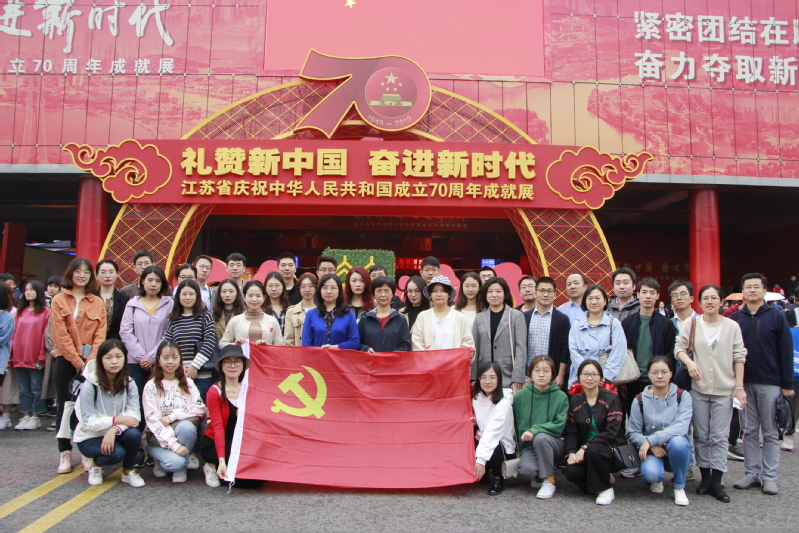 为庆祝中华人民共和国成立70周年,扎实推进“不忘初心、牢记使命”主题教育,男人天堂 管工系、行政服务中心等教工党支部与各自联系的学生党支部开展了参观“江苏省庆祝中华人民共和国成立70周年成就展”活动。