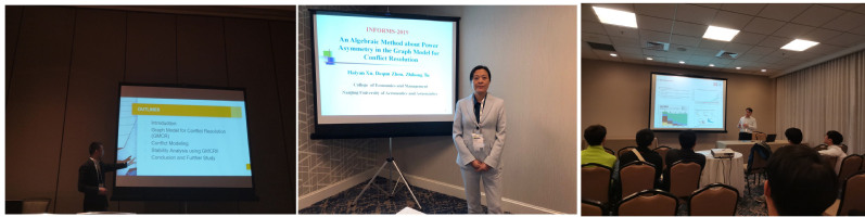 会议期间,代表团听取了大会主题报告以及Big Data、Energy Applications、Operation Management、Decision Analysis等多场专题报告,并在分会场交流了“基于证据提取的我国民航碳减排冲突图模型”、“基于冲突图模型理论的权利不对称的代数表示”、“可再生能源技术的最优政策支持:一个动态最优模型“等学术报告,报告内容引起与会代表的极大兴趣。