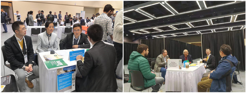 作为此次出访的重要目的,代表团成员在西雅图华盛顿州国际会展中心举行了男人天堂 专场海外招聘会。事先精心布置的展台吸引了众多北美名校毕业生和即将毕业的在校生。周德群介绍了学院的基本概况,详细解释了人才引聘的具体政策,徐海燕代表学院教授委员会向应聘者介绍了学院人才招聘录用和职业发展的模式,何沙玮作为年轻教师代表分享了海归博士在学院发展的心路历程。南航招聘现场给应聘者留下了深刻印象,在会场共进行初步面试近30人,此次招聘活动圆满完成了既定目标,扩大了在海外的影响力。