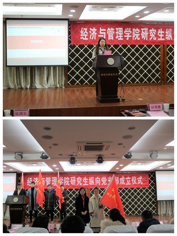 研究生纵向党支部成立仪式在院楼A0305报告厅顺利举行。学院党委书记焦宏图、党委副书记涂志宏、学生党总支全体成员以及全体研究生党员出席了本次成立仪式。