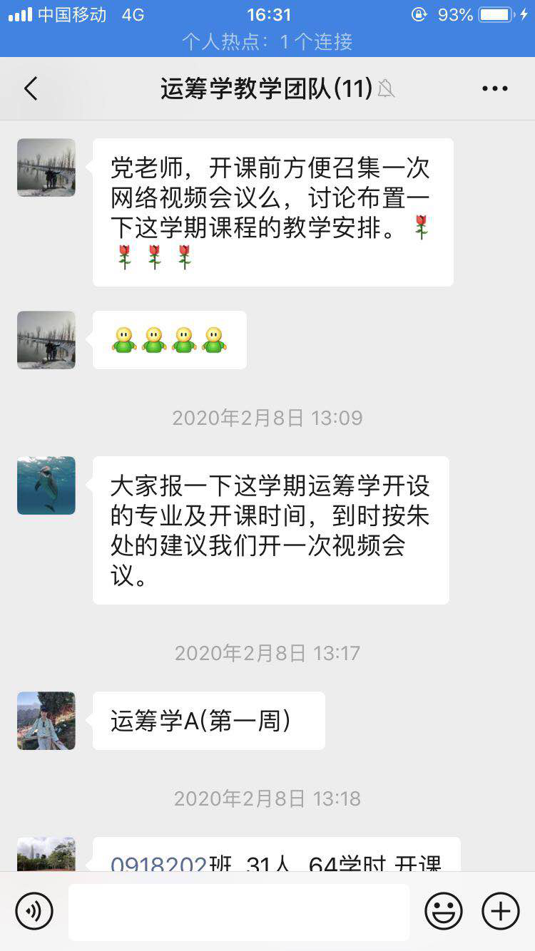 2020年2月初,新年初始,《运筹学》团队按照教育部《关于在疫情防控期间做好普通高等学校在线教学组织与管理工作的指导意见》和教育厅相关文件精神,根据“停课不停教、停课不停学”要求,在团队负责人党耀国教授的组织下,《运筹学》团队的11位教师积极交流新学期线上线下课程准备过程中的经验、问题与想法,有序组织新学期线上教学的资源共享、教学视频、习题库建设、答疑设计、教学任务等活动开展。