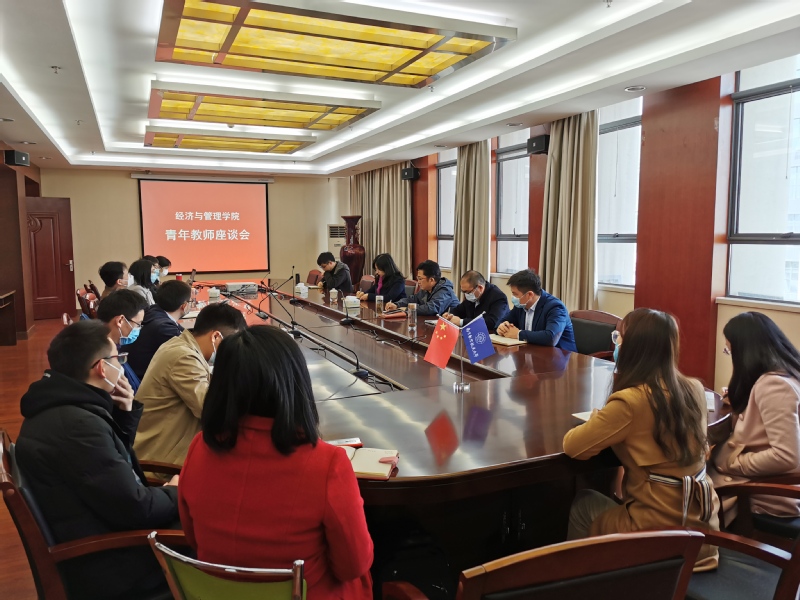 院长周德群最后进行了总结发言,他说,青年教师是学院的未来,是学院发展不竭的动力,学院这些年的快速发展离不开青年教师的的加盟与勤奋努力,青年教师思想政治过硬、学术基础扎实、具有国际视野、创新能力强,因此产出高水平成果、推进国际化步伐、打造创新氛围离不开青年教师。事实说明,学院发展的一些关键指标都有青年教师的贡献。同时他希望广大青年教师不断加强学习,不断提升自己能力,加强合作,在教学与科研中始终树立精品意识与质量意识,平衡和处理好个体发展与组织发展的关系、教学与研究的关系、理论研究与应用研究的关系、国际国内合作交流的关系。最后,周德群寄语青年教师:青年强则学院强,希望大家只争朝夕,不负韶华,永立时代潮头。