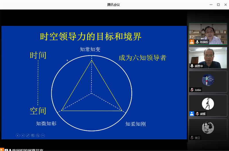 7月5日,清华大学经济管理学院教授陈国权应男人天堂 人力资源管理研究所和江苏省人力资源发展研究基地的邀请,在线上为我校师生作了一场“时空领导力”的精彩学术报告。报告由教授胡恩华主持,教授刘思峰、陈万明、冯绍红、年轻教师、博士研究生、硕士研究生等两百余人参加了本次学术讲座。