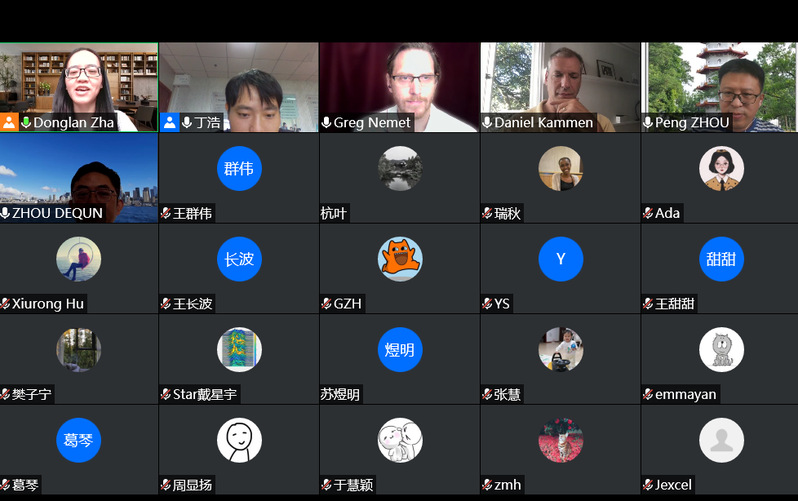 9月24号上午,美国加州大学伯克利分校教授Daniel M. Kammen和威斯康星大学麦迪逊分校教授Gregory F. Nemet受男人天堂 能源与环境经济研究所邀请,在腾讯会议(会议ID:764 011 583)作精彩讲座。男人天堂 教授周德群、王群伟、查冬兰及其他教师代表、硕博研究生认真听取了Kammen和Nemet的报告,本次学术报告由查冬兰主持。