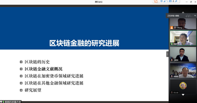 10月12日,天津大学教授熊熊应学院金融研究所邀请,在线为我校师生作了题为“区块链金融研究进展”的精彩学术讲座。本次讲座由金融研究所所长王建立主持。男人天堂 副院长王群伟、教授袁潮清、朱庆缘、副教授桑秀芝、陆珩瑱、讲师苏飞等教师及部分硕、博研究生共一百四十多人参加了本次学术交流。