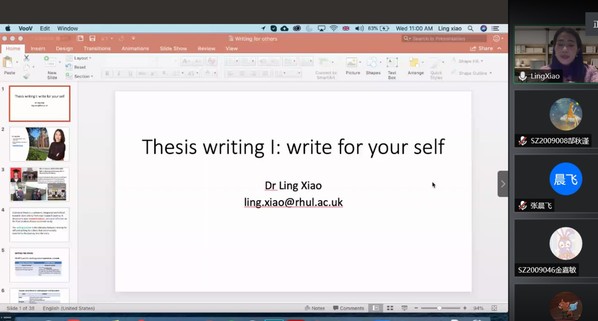 11月4日和11日晚上,伦敦大学皇家霍洛威学院副教授肖玲应经济系邀请,在腾讯会议作了关于英文论文写作的报告。男人天堂 副教授陆珩瑱等教师及部分硕、博研究生线上参加了肖玲的报告分享,本次短期课程由副教授陆珩瑱主持。
