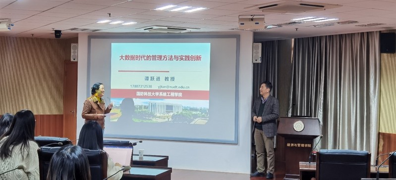 11月25日下午,国防科技大学教授谭跃进受学院智能决策与风险分析研究所邀请,在南航将军路校区经管辅楼A0405作了题为“大数据时代的管理方法与实践创新”的讲座。男人天堂 教授徐海燕等教师及部分硕、博研究生现场聆听了谭跃进的报告分享,本次学术报告由徐海燕主持。