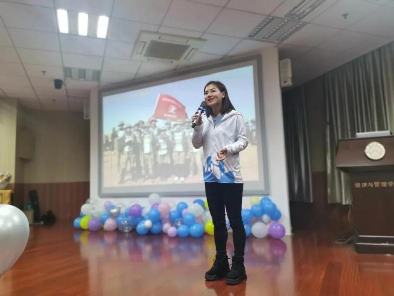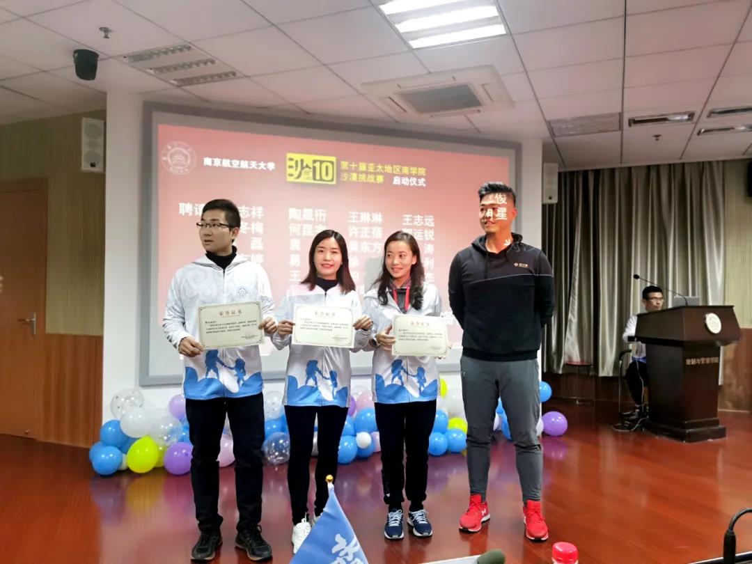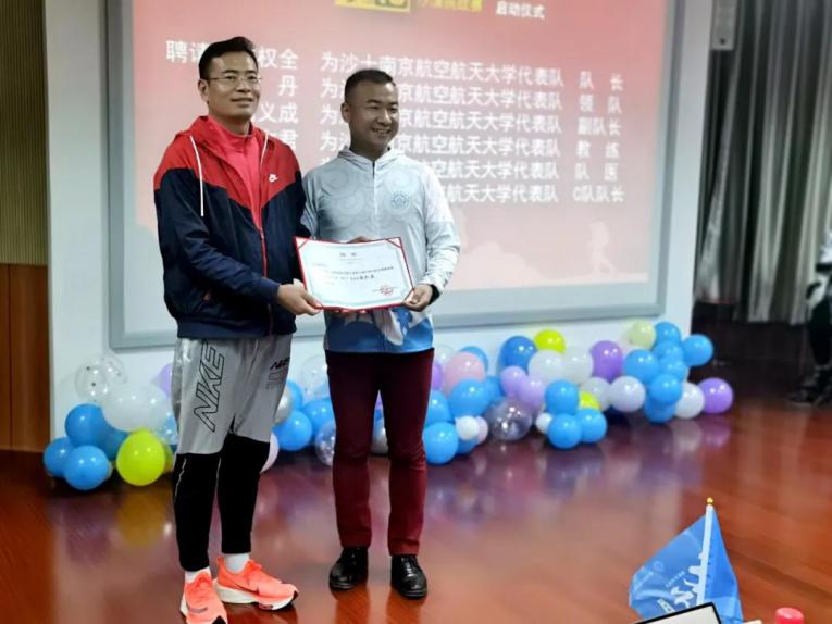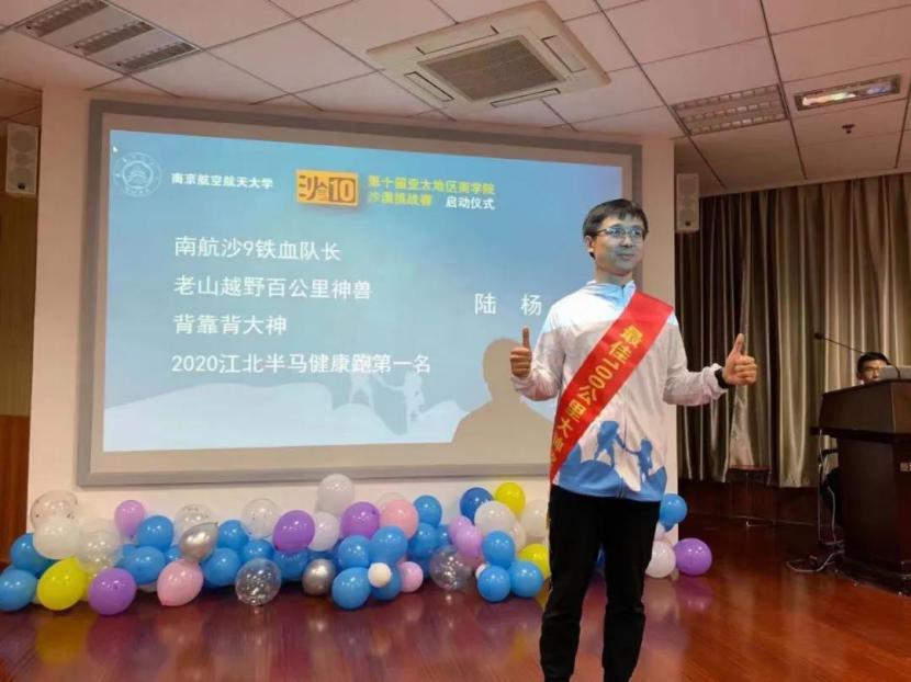 当天,南航沙9队长陆杨也来到了现场。在今年8月沙九赛场上,南航代表队获得了12名的好成绩,并捧回亚沙赛团体最高奖项“沙鸥奖”奖杯。在启动会现场,陆杨也分享了自己从“跑步小白”蜕变成“百公里神兽”的心路历程。