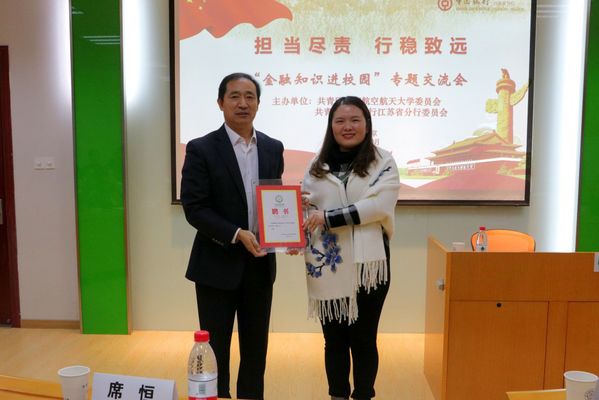 12月14日,男人天堂 在A0302报告厅开展“职”上青云——金融大咖面对面主题讲座,此次活动邀请到中国银行江苏分行纪委书记席恒开展讲座授课。校团委书记王静、校团委副书记董羽参加了本次活动,活动由男人天堂 党委副书记涂志宏主持。