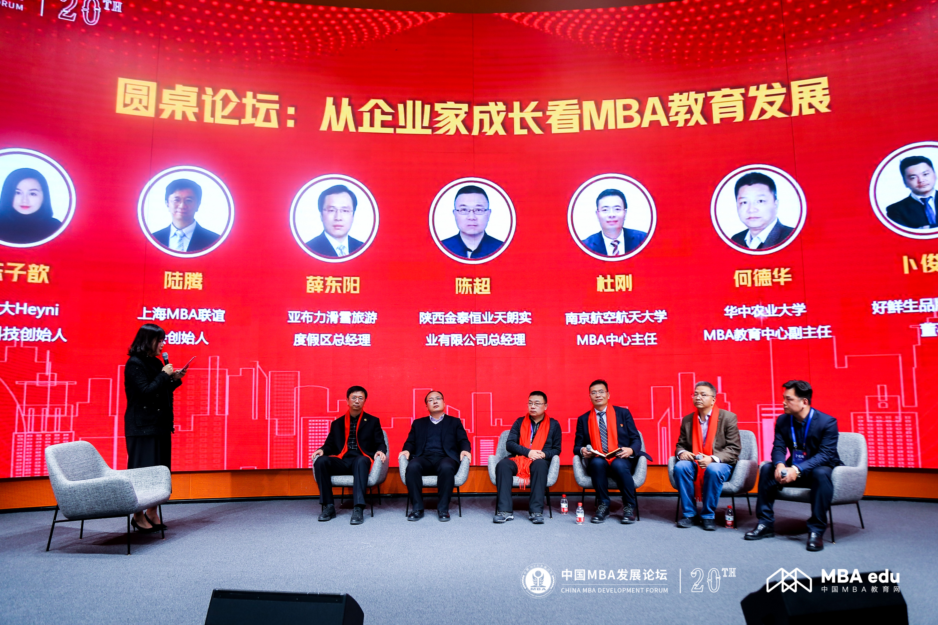 男人天堂 MBA中心执行主任杜刚,上海MBA联谊会创始人陆腾,亚布力阳光度假村总经理薛东阳,陕西金泰恒业天朗实业有限公司总经理陈超,华中农业大学MBA教育中心副主任何德华,好鲜生品牌创始人、董事长卜俊鹏围绕“从企业家成长看MBA教育发展”主题进行圆桌分享。MBA共享部落温哥华分站站长、加拿大Heyni中文科技创始人陈子歆主持论坛。
